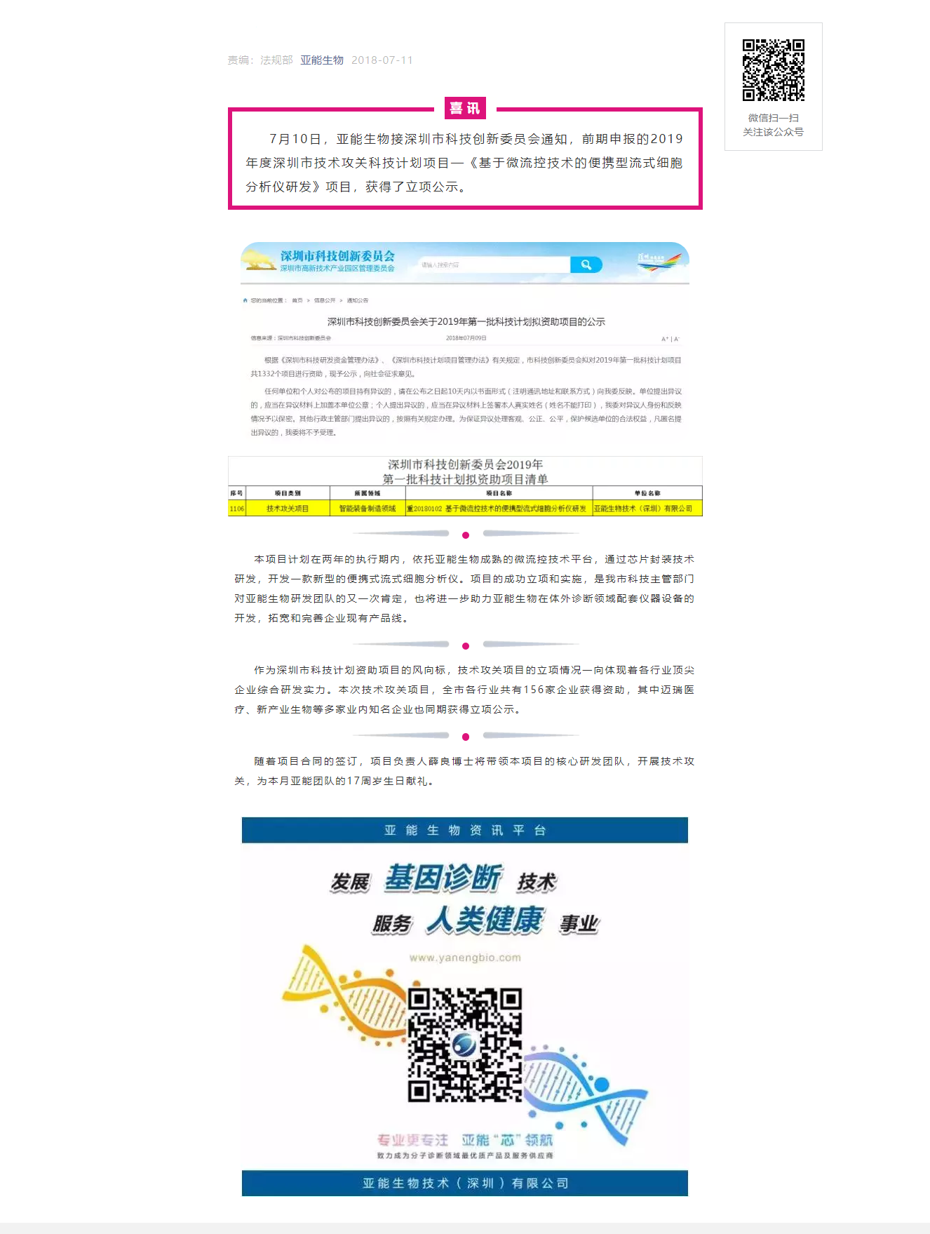 【喜讯】亚能生物获得深圳市技术攻关项目资助